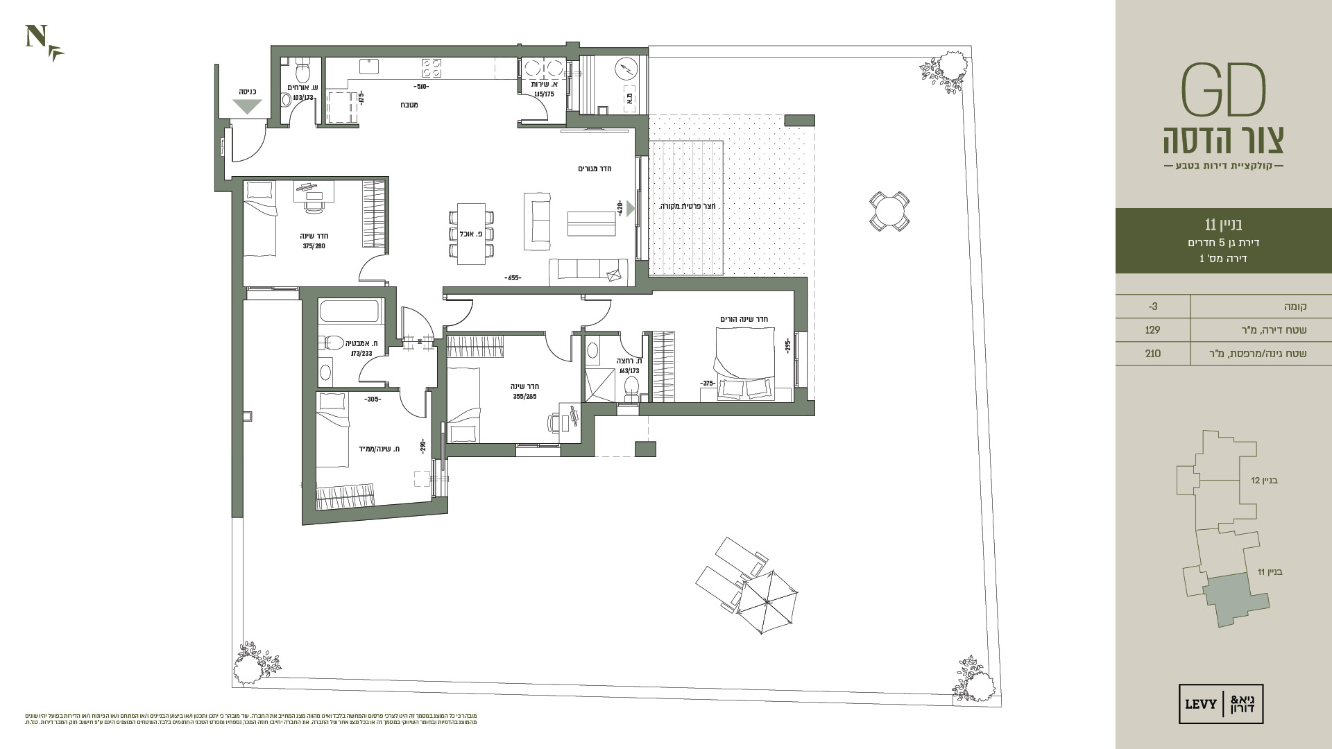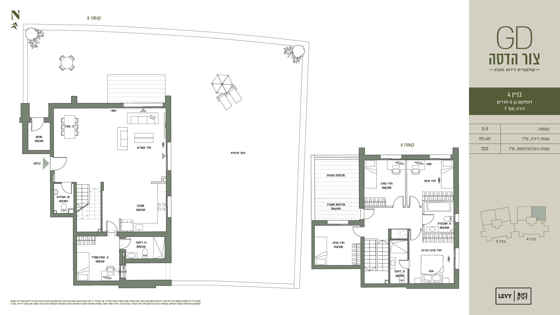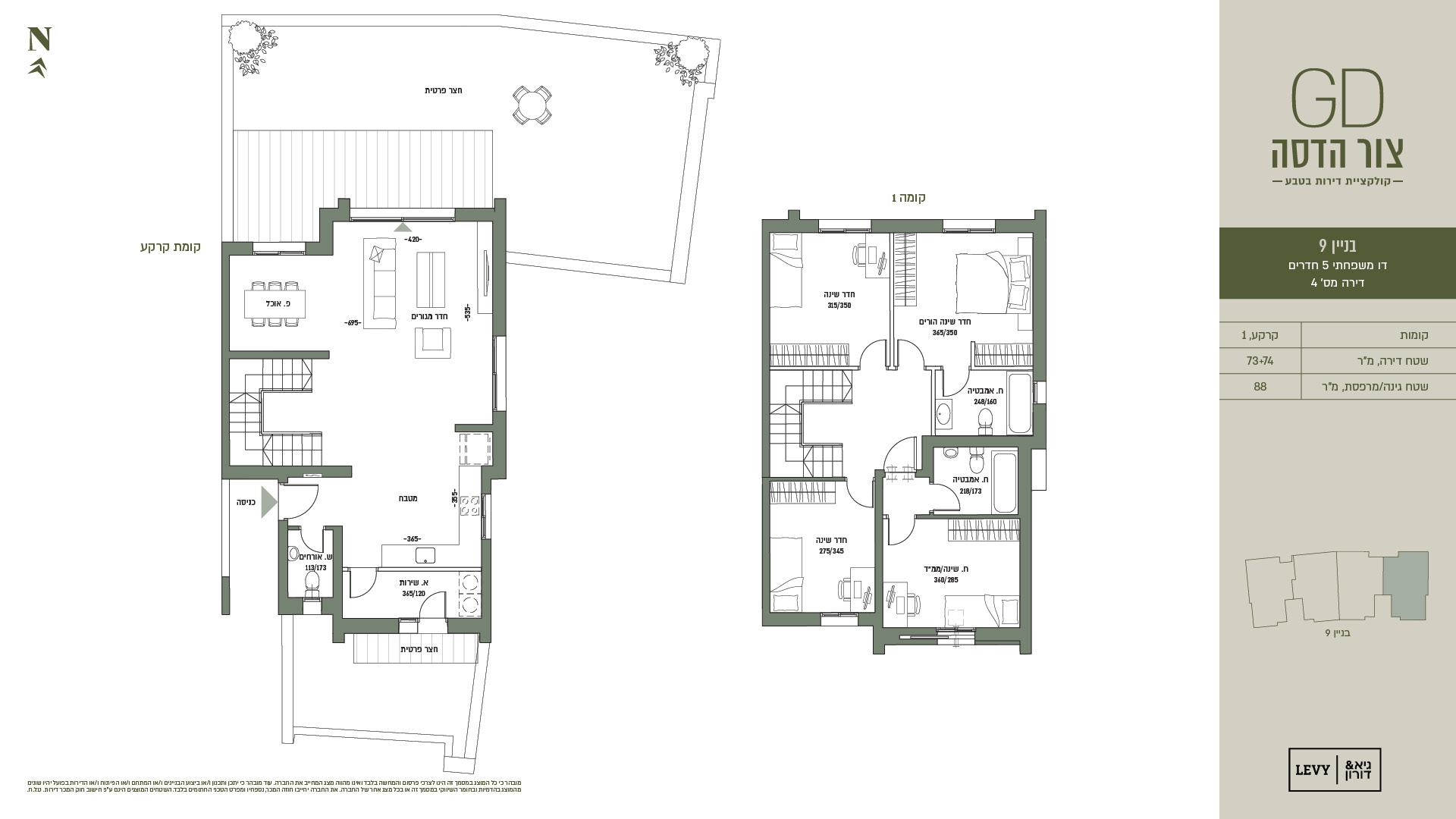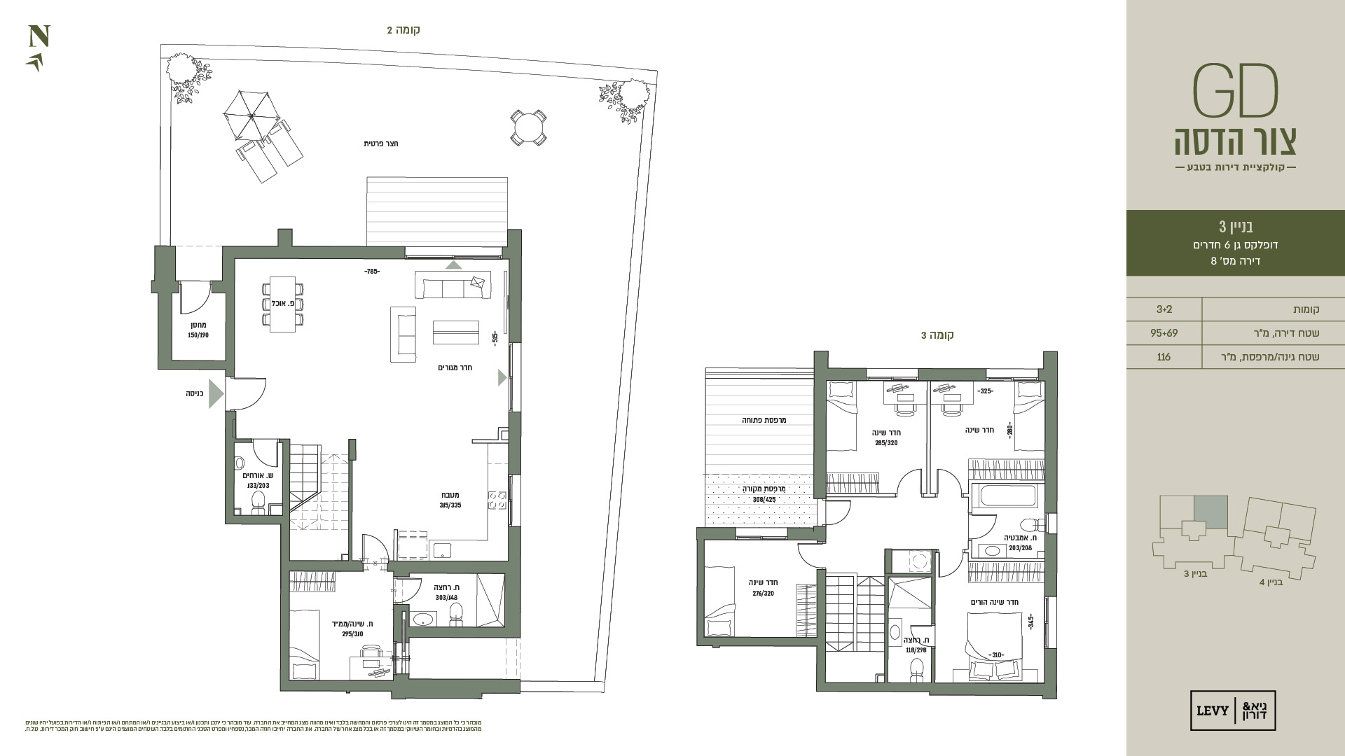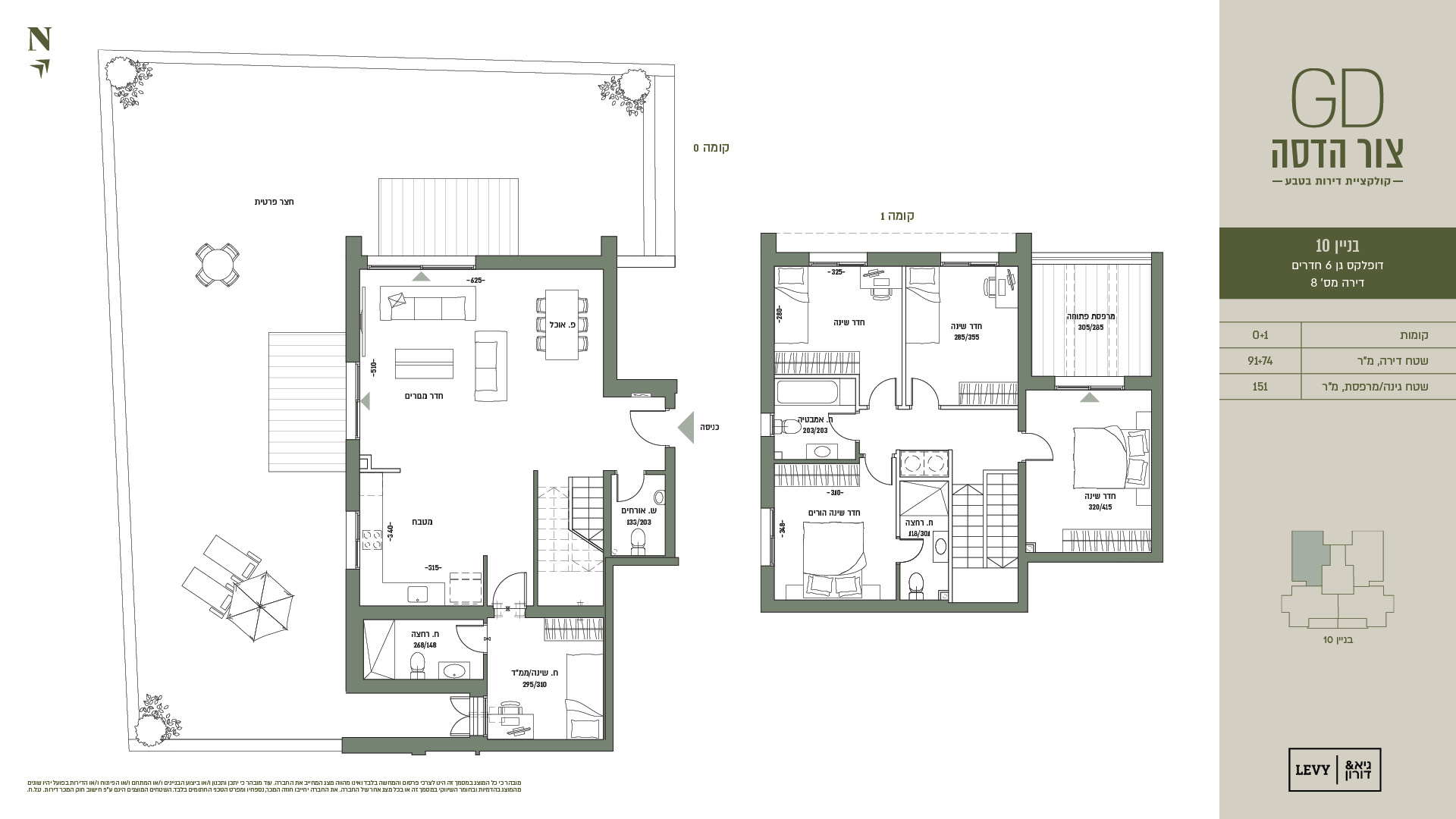 מובהר כי כל המוצג במסמך זה הינו לצרכי פרסום והמחשה בלבד ואינו מהווה מצג המחייב את החברה. עוד מובהר כי יתכן ותכנון ו/או ביצוע הבניינים ו/או המתחם ו/או הפיתוח ו/או הדירות בפועל יהיו שונים מהמוצג בהדמיות ובחומר השיווקי במסמך זה או בכל מצג אחר של החברה. את החברה יחייבו חוזה המכר, נספחיו ומפרט הטכני החתומים בלבד. ט.ל.ח.
