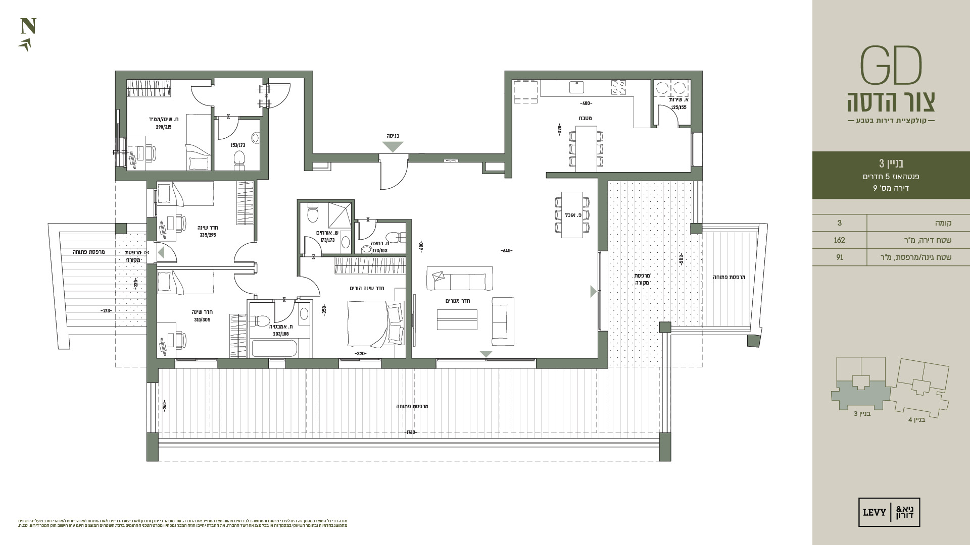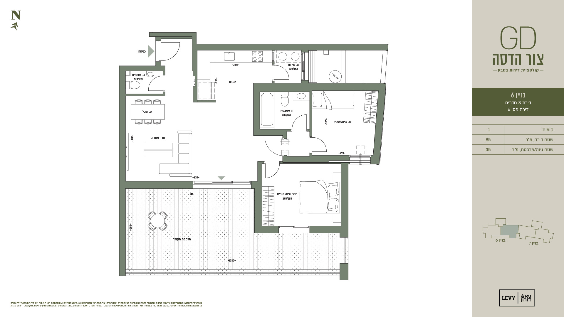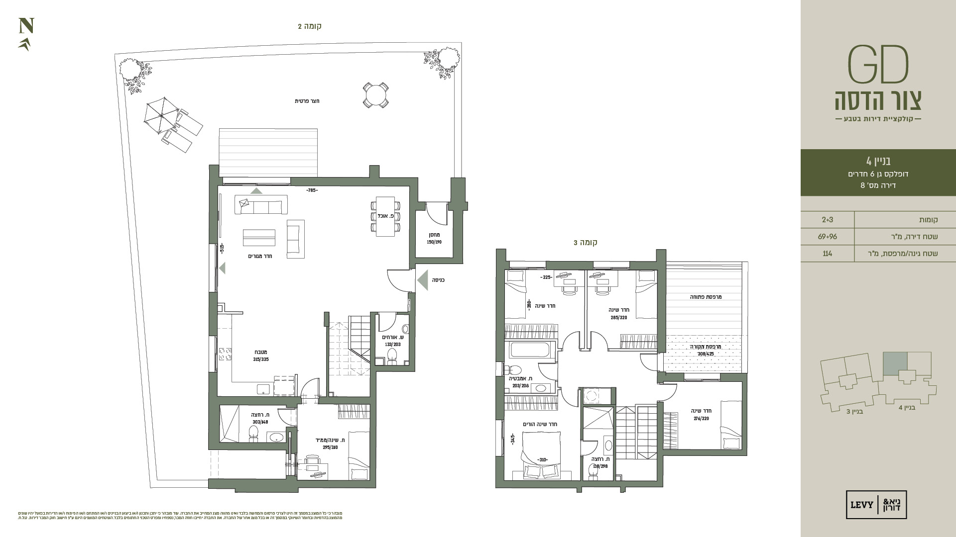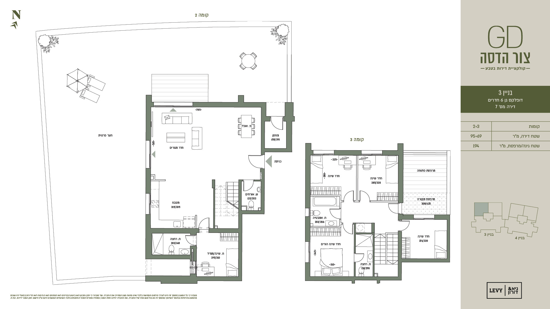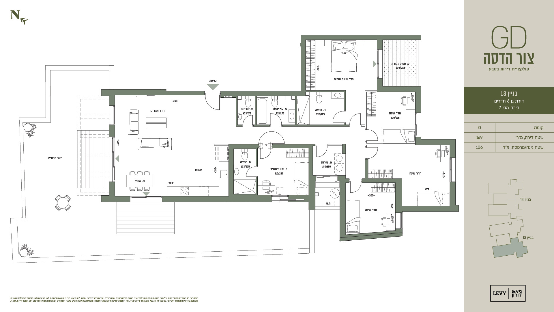 מובהר כי כל המוצג במסמך זה הינו לצרכי פרסום והמחשה בלבד ואינו מהווה מצג המחייב את החברה. עוד מובהר כי יתכן ותכנון ו/או ביצוע הבניינים ו/או המתחם ו/או הפיתוח ו/או הדירות בפועל יהיו שונים מהמוצג בהדמיות ובחומר השיווקי במסמך זה או בכל מצג אחר של החברה. את החברה יחייבו חוזה המכר, נספחיו ומפרט הטכני החתומים בלבד. ט.ל.ח.