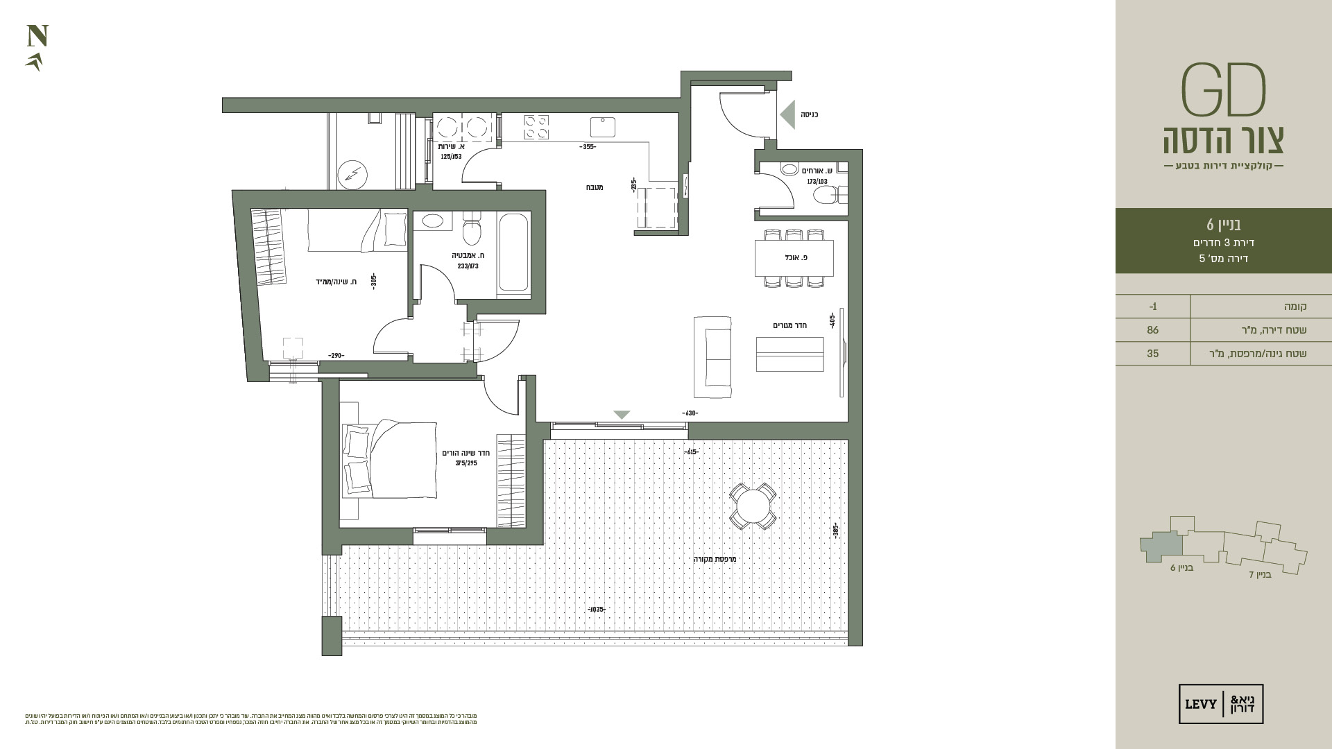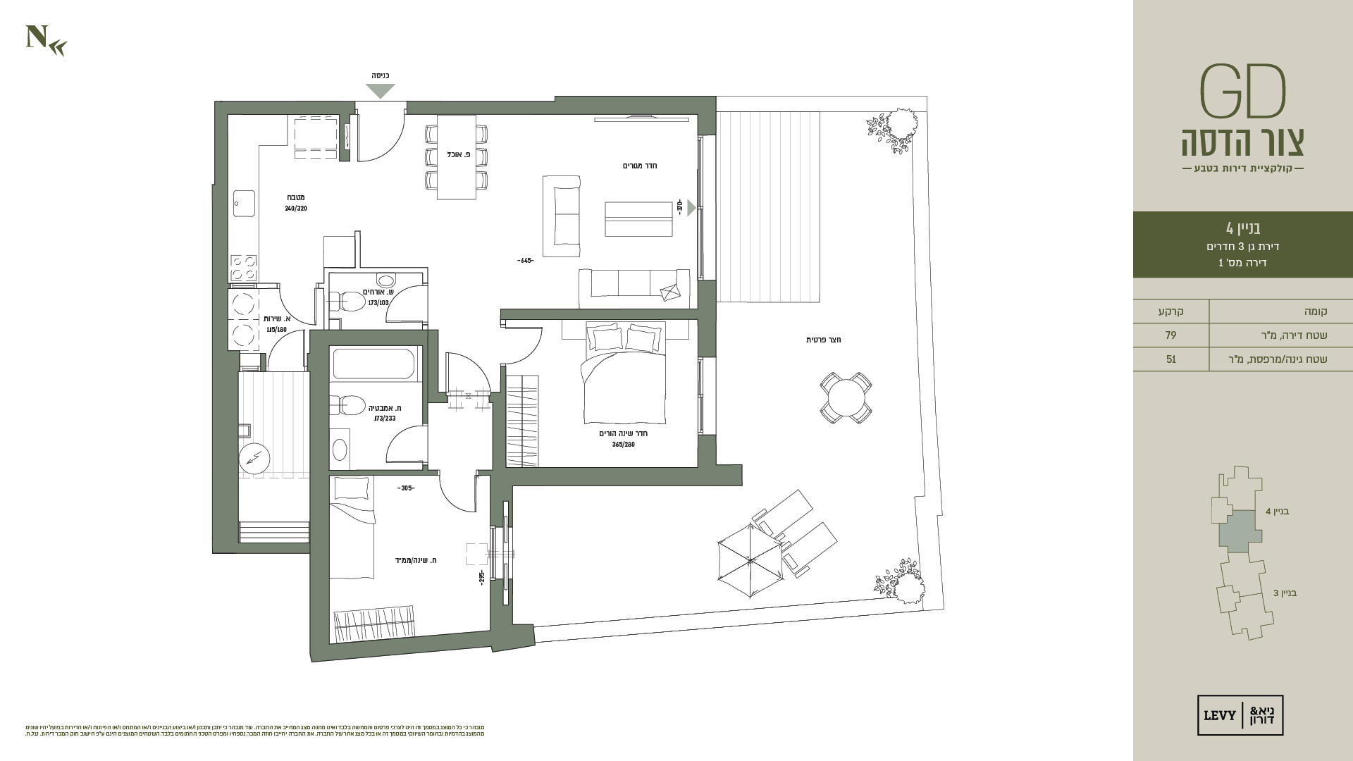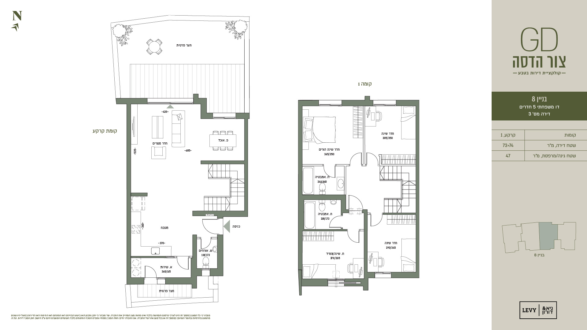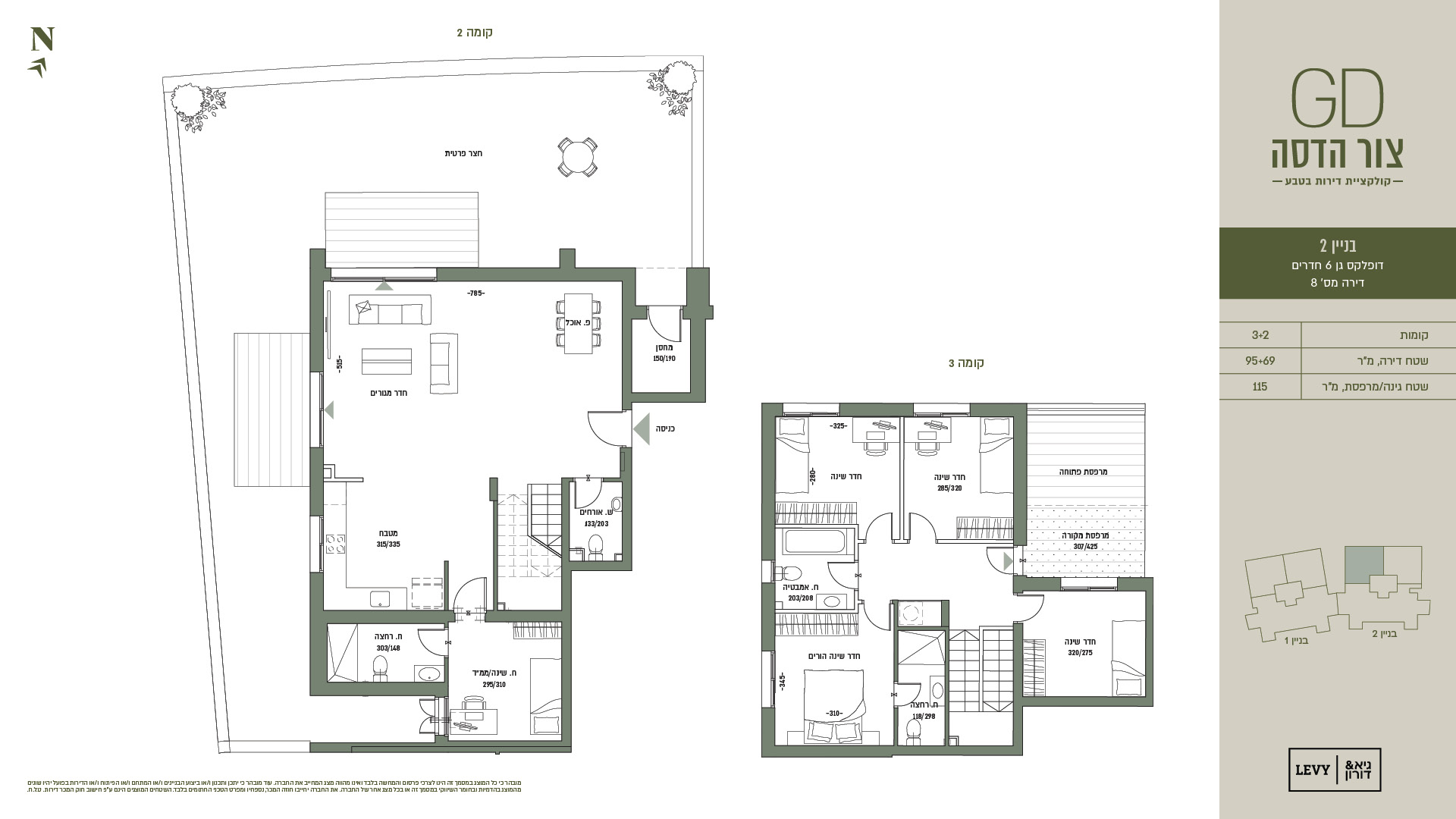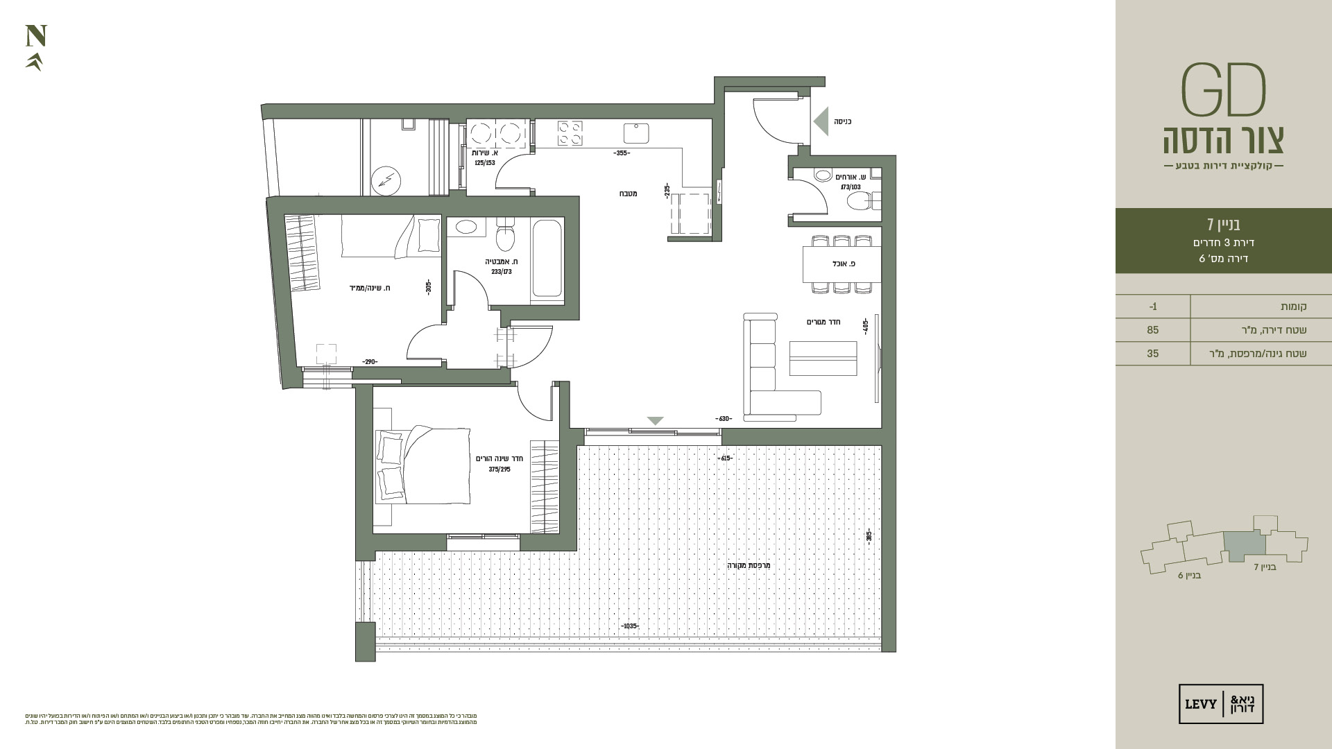 מובהר כי כל המוצג במסמך זה הינו לצרכי פרסום והמחשה בלבד ואינו מהווה מצג המחייב את החברה. עוד מובהר כי יתכן ותכנון ו/או ביצוע הבניינים ו/או המתחם ו/או הפיתוח ו/או הדירות בפועל יהיו שונים מהמוצג בהדמיות ובחומר השיווקי במסמך זה או בכל מצג אחר של החברה. את החברה יחייבו חוזה המכר, נספחיו ומפרט הטכני החתומים בלבד. ט.ל.ח.