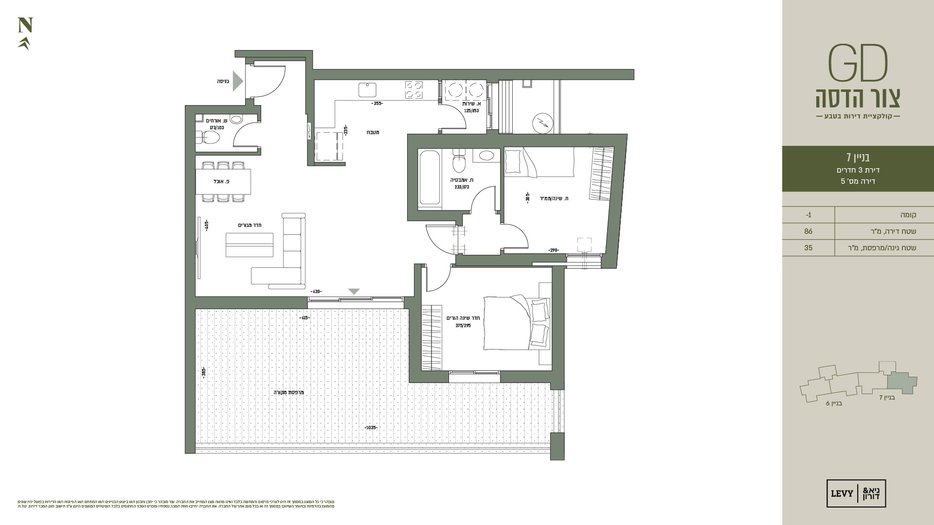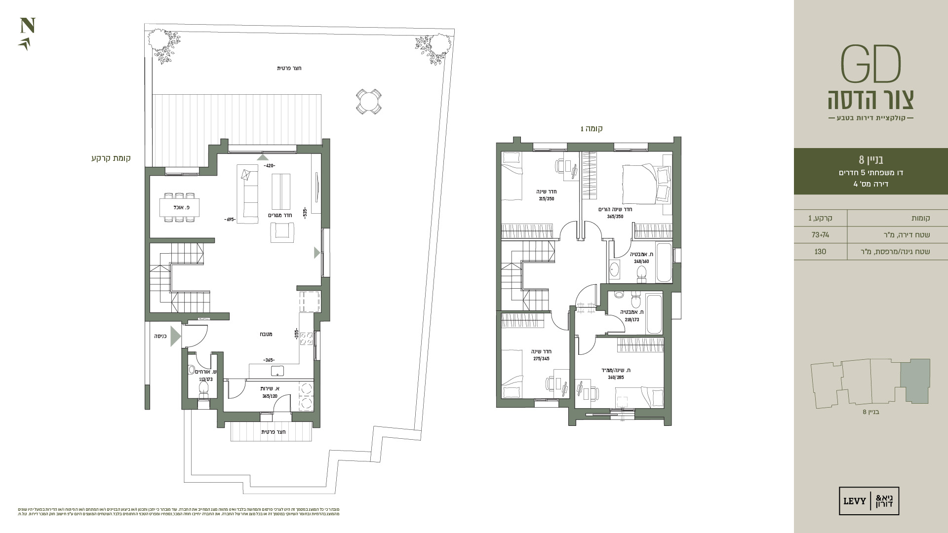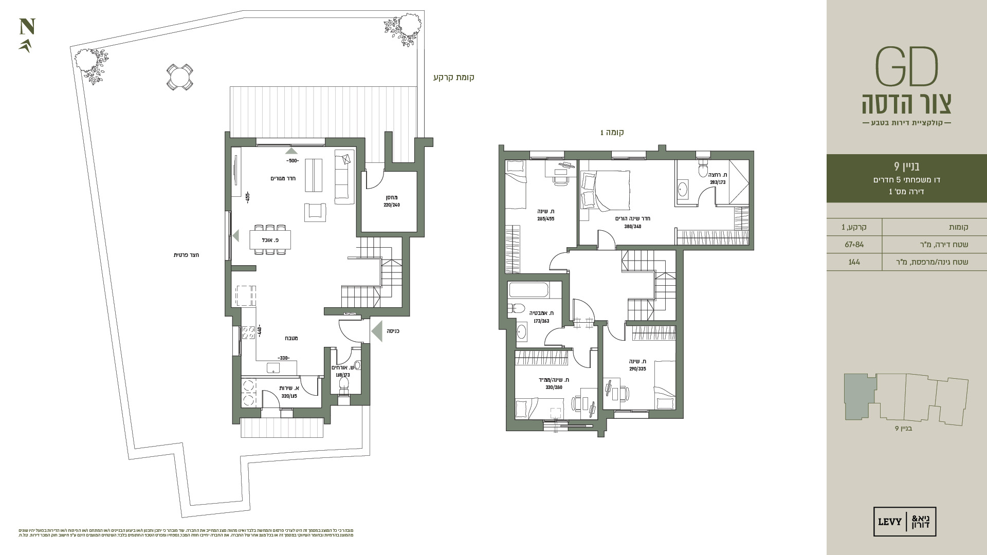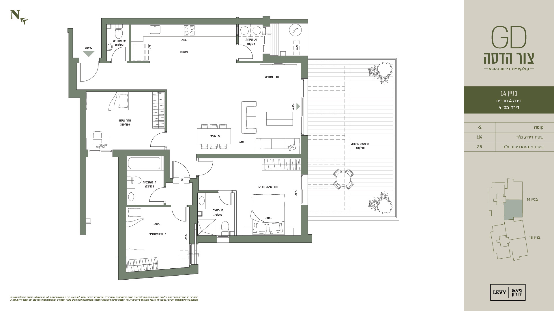 מובהר כי כל המוצג במסמך זה הינו לצרכי פרסום והמחשה בלבד ואינו מהווה מצג המחייב את החברה. עוד מובהר כי יתכן ותכנון ו/או ביצוע הבניינים ו/או המתחם ו/או הפיתוח ו/או הדירות בפועל יהיו שונים מהמוצג בהדמיות ובחומר השיווקי במסמך זה או בכל מצג אחר של החברה. את החברה יחייבו חוזה המכר, נספחיו ומפרט הטכני החתומים בלבד. ט.ל.ח.
