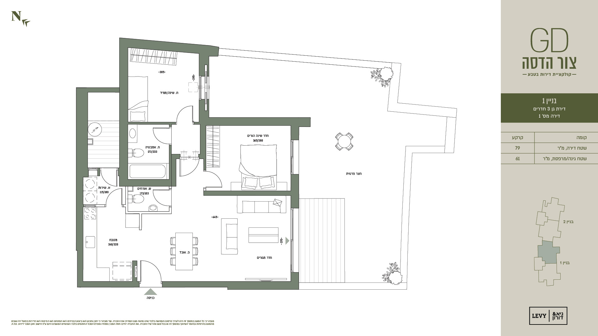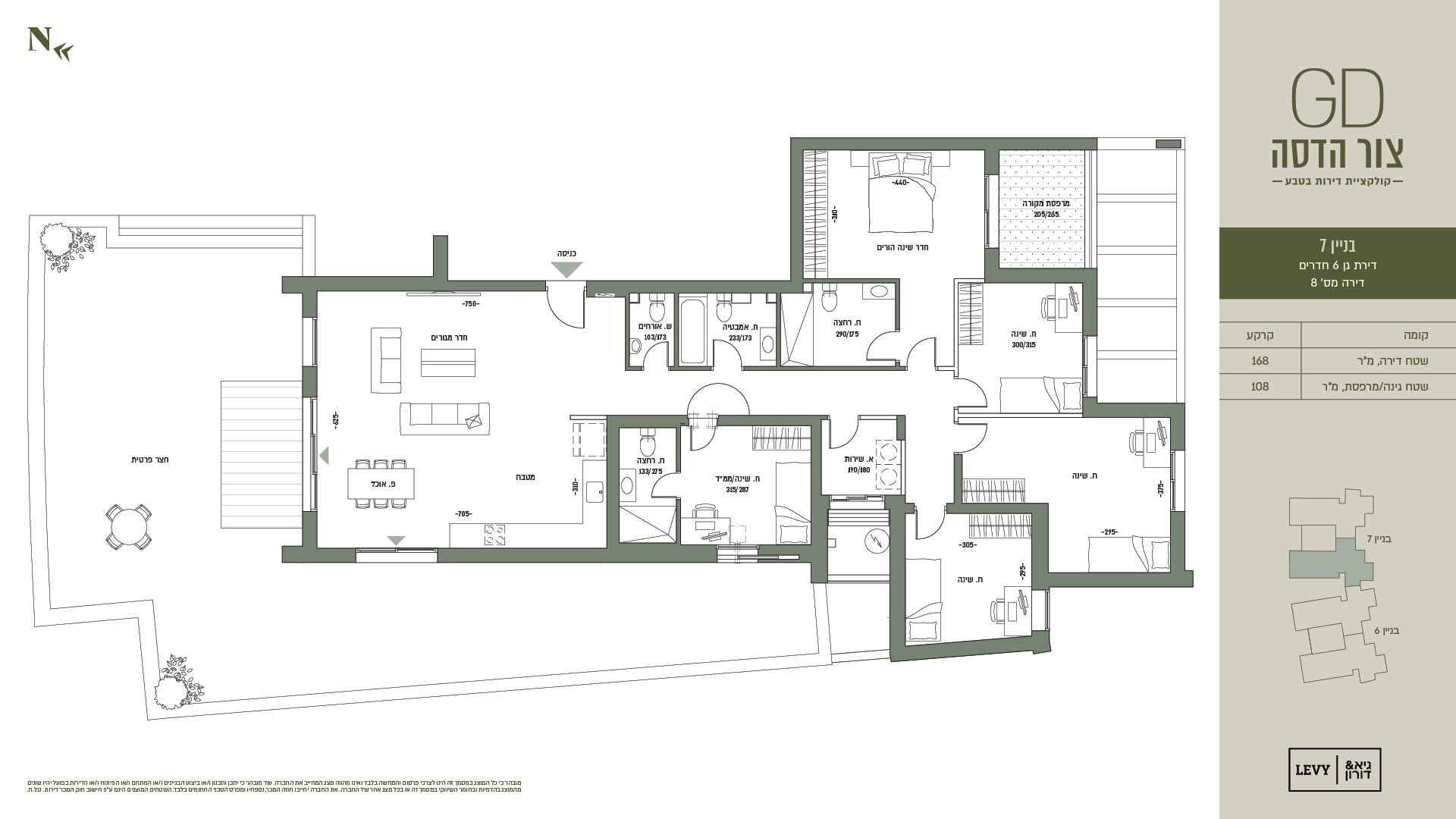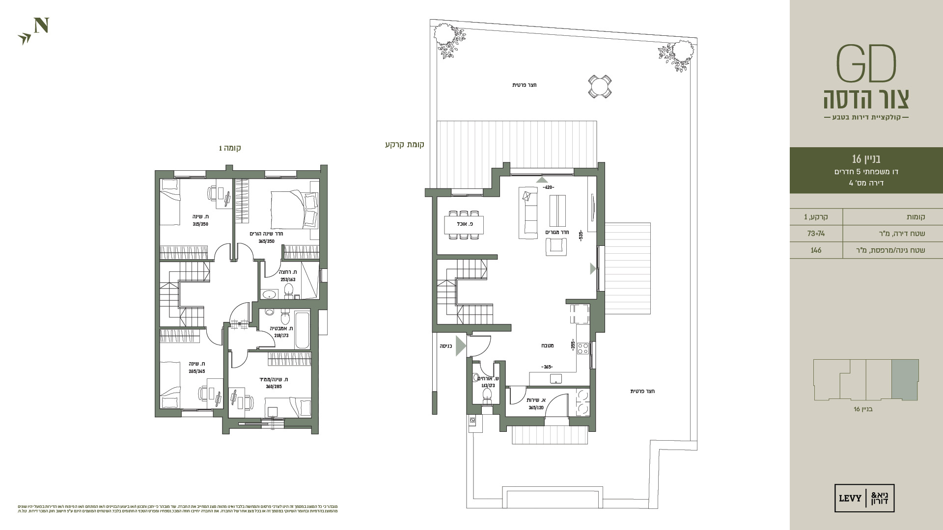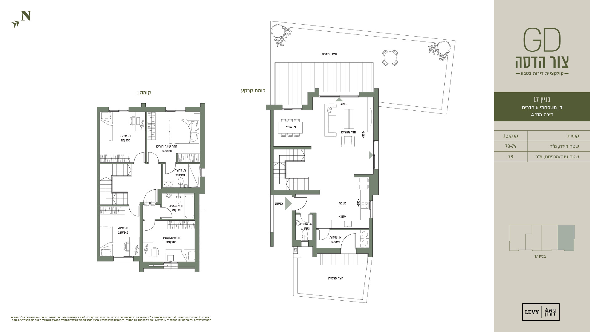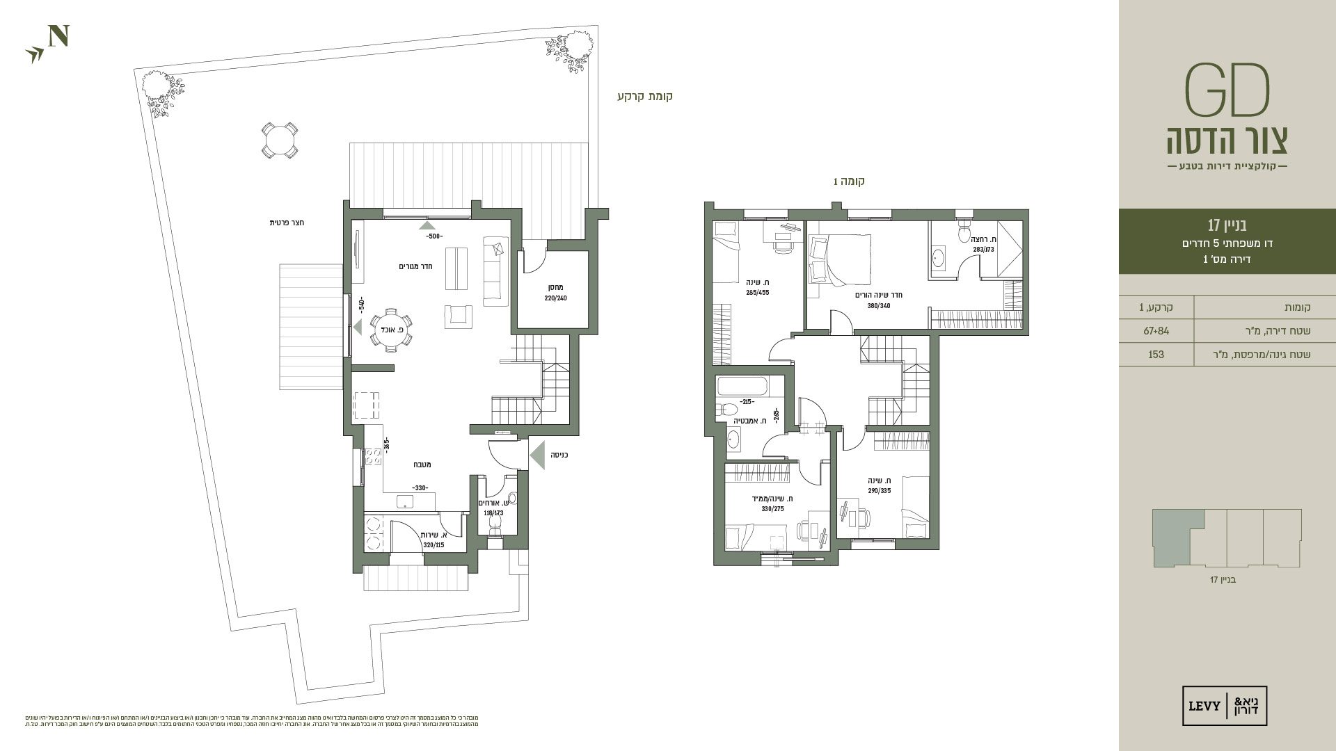 מובהר כי כל המוצג במסמך זה הינו לצרכי פרסום והמחשה בלבד ואינו מהווה מצג המחייב את החברה. עוד מובהר כי יתכן ותכנון ו/או ביצוע הבניינים ו/או המתחם ו/או הפיתוח ו/או הדירות בפועל יהיו שונים מהמוצג בהדמיות ובחומר השיווקי במסמך זה או בכל מצג אחר של החברה. את החברה יחייבו חוזה המכר, נספחיו ומפרט הטכני החתומים בלבד. ט.ל.ח.