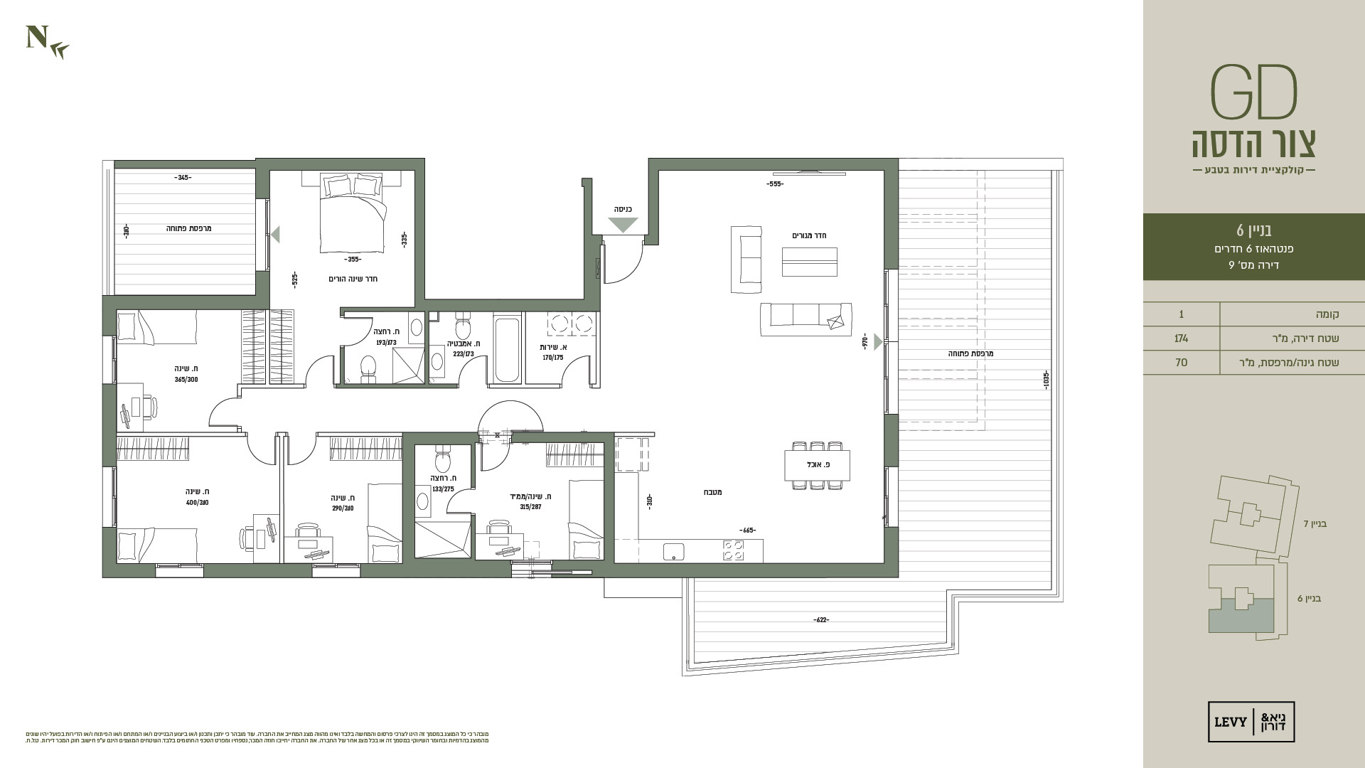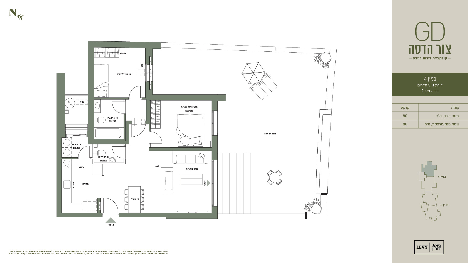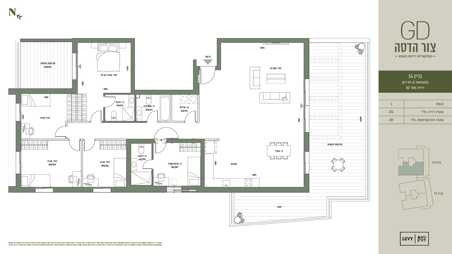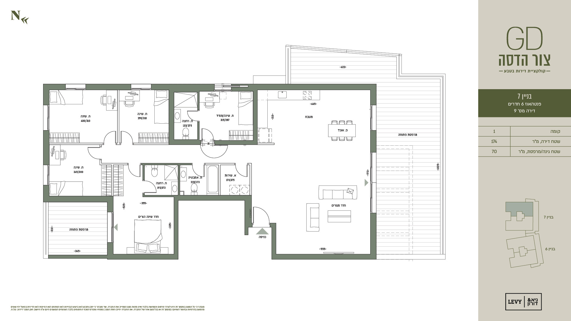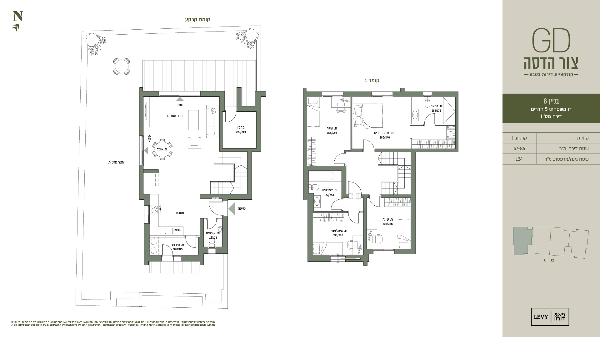 מובהר כי כל המוצג במסמך זה הינו לצרכי פרסום והמחשה בלבד ואינו מהווה מצג המחייב את החברה. עוד מובהר כי יתכן ותכנון ו/או ביצוע הבניינים ו/או המתחם ו/או הפיתוח ו/או הדירות בפועל יהיו שונים מהמוצג בהדמיות ובחומר השיווקי במסמך זה או בכל מצג אחר של החברה. את החברה יחייבו חוזה המכר, נספחיו ומפרט הטכני החתומים בלבד. ט.ל.ח.