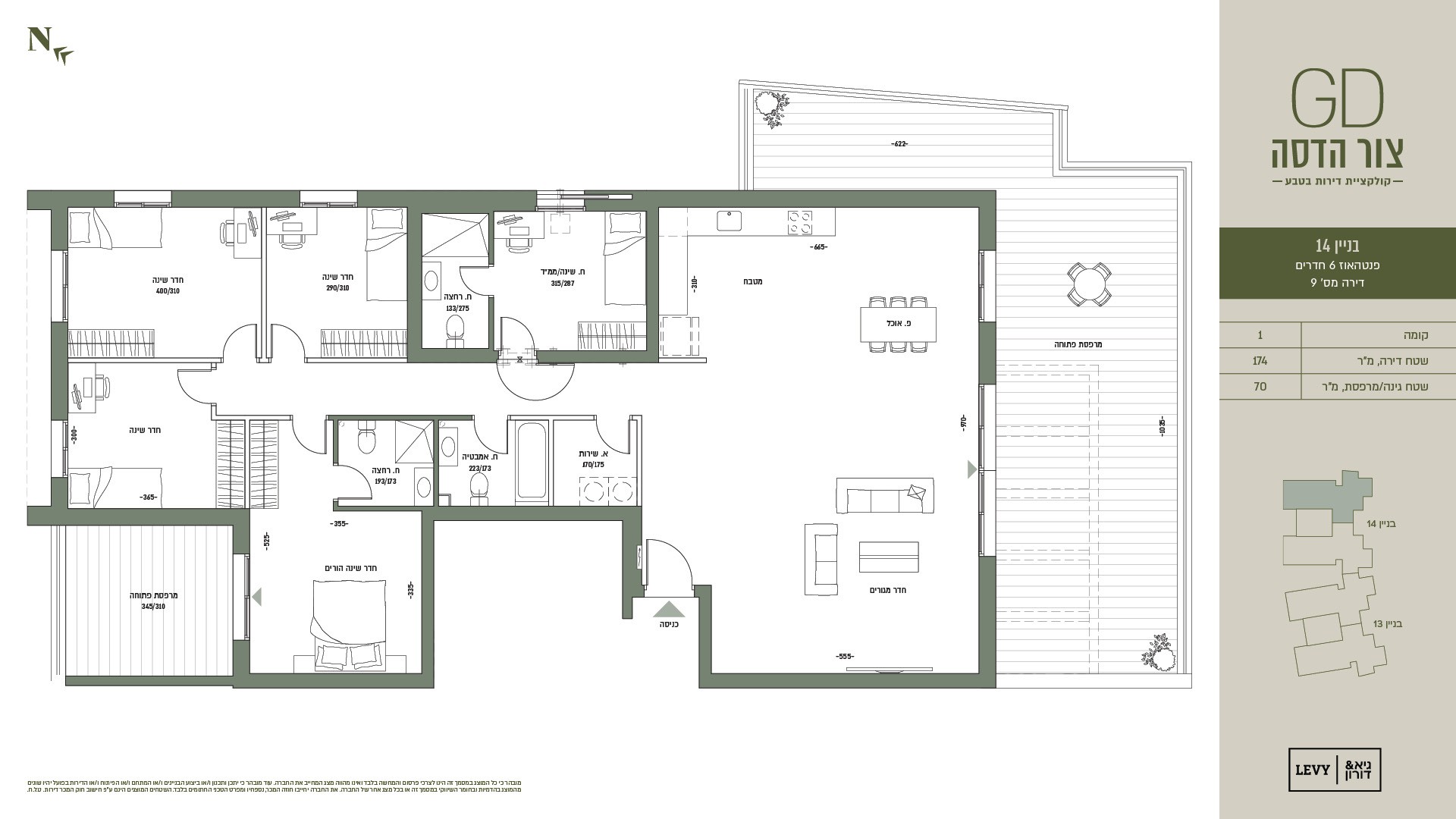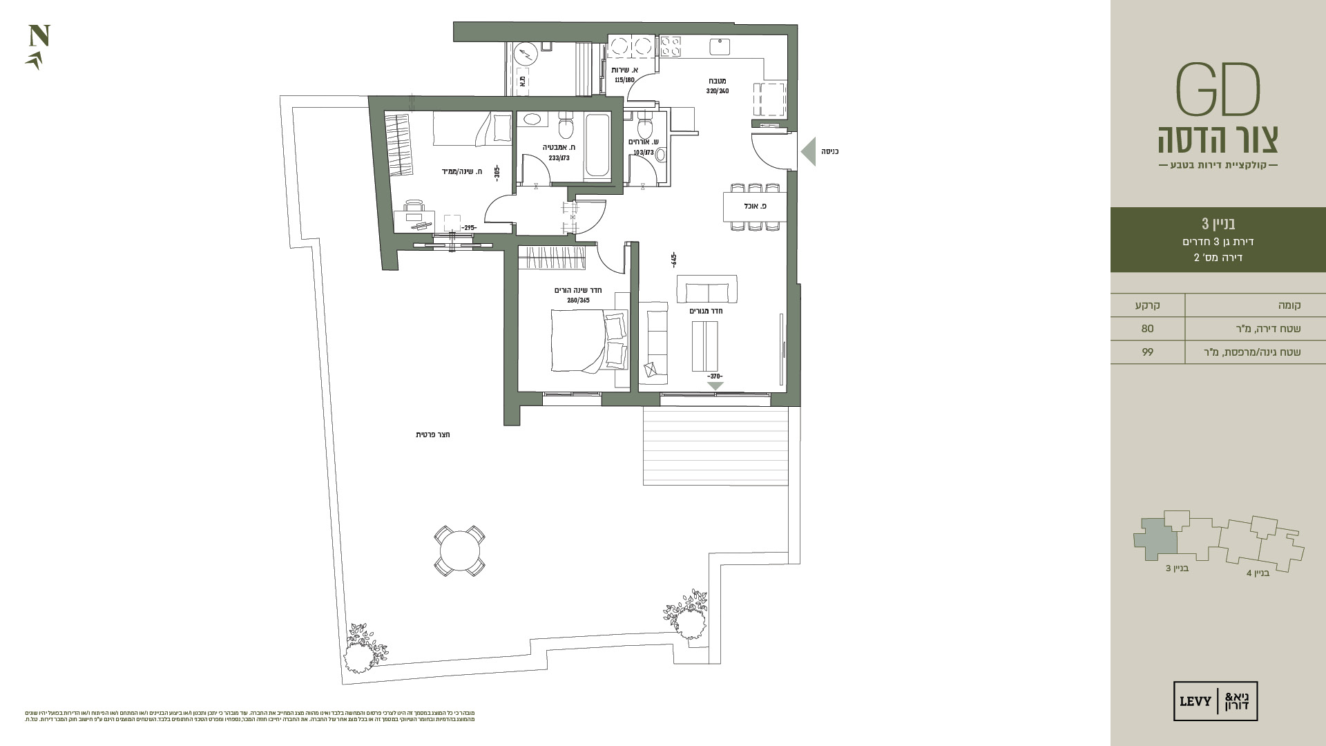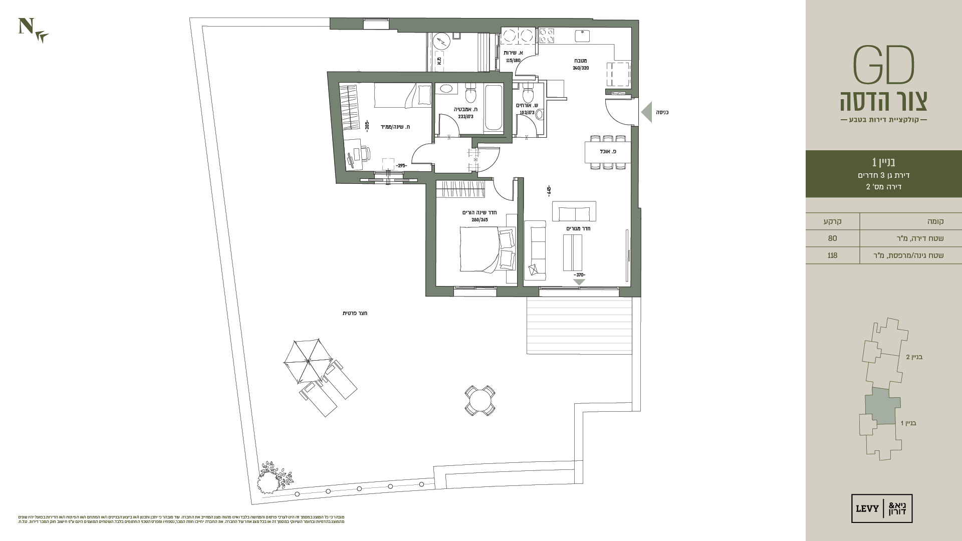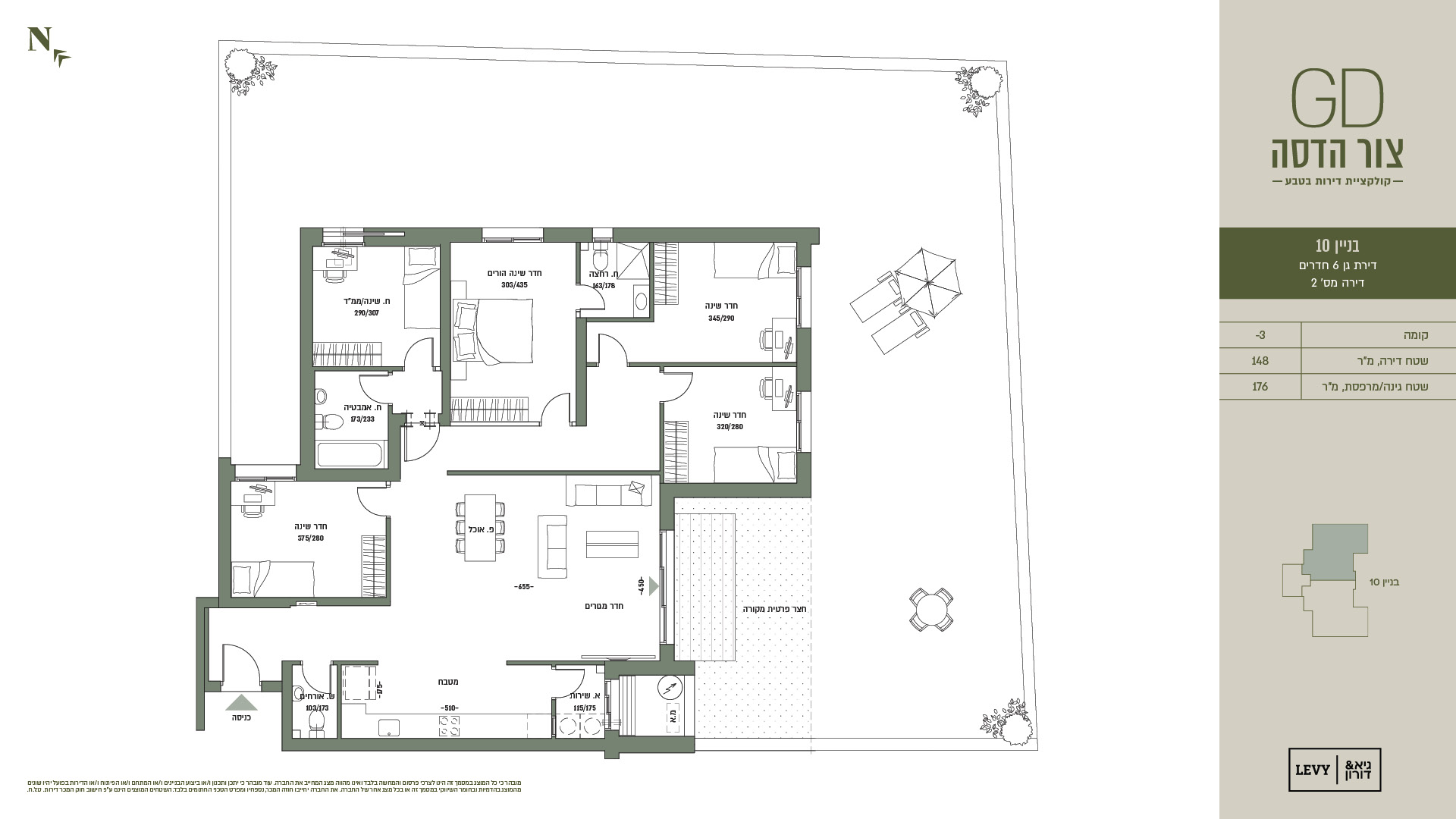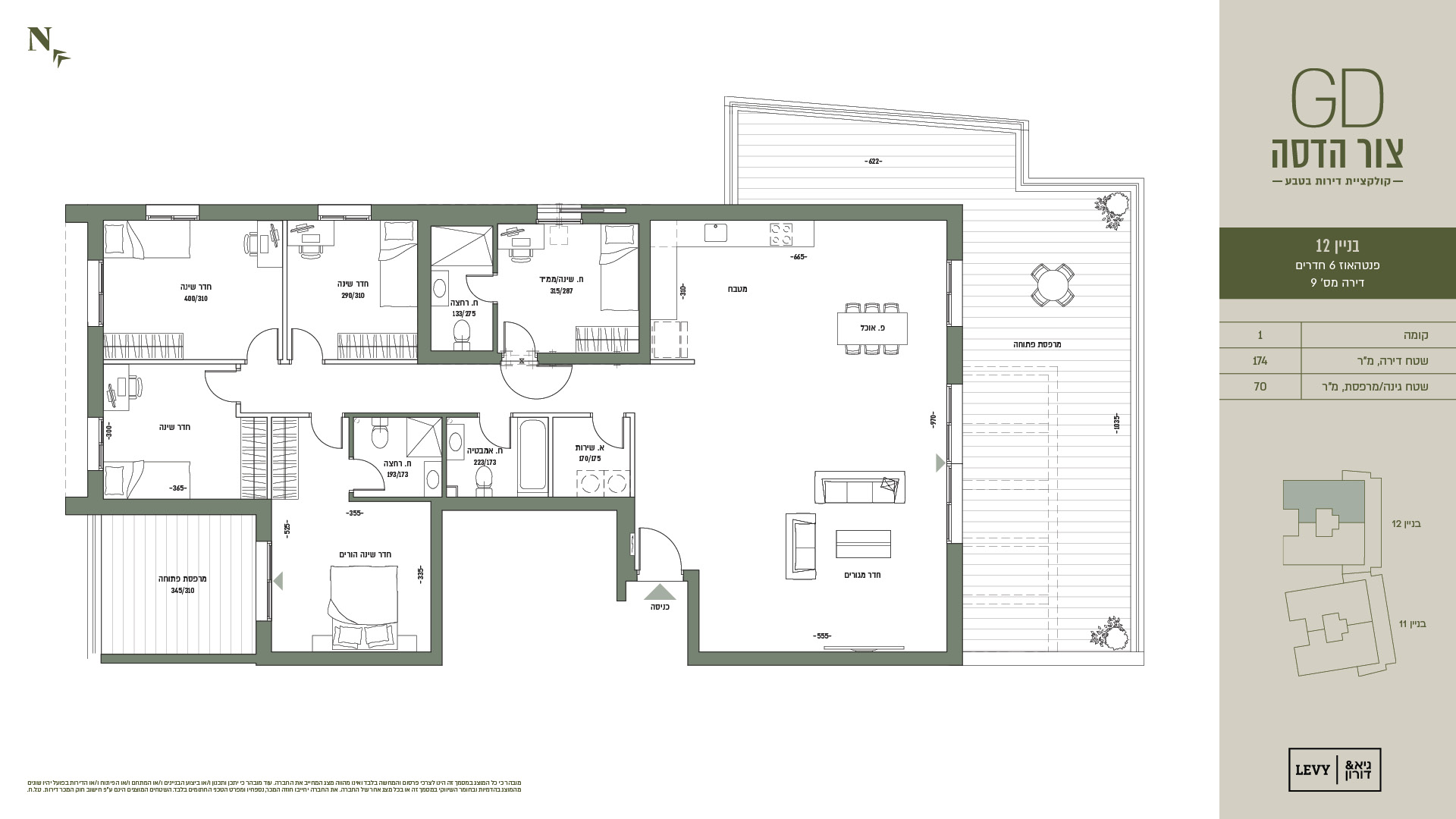 מובהר כי כל המוצג במסמך זה הינו לצרכי פרסום והמחשה בלבד ואינו מהווה מצג המחייב את החברה. עוד מובהר כי יתכן ותכנון ו/או ביצוע הבניינים ו/או המתחם ו/או הפיתוח ו/או הדירות בפועל יהיו שונים מהמוצג בהדמיות ובחומר השיווקי במסמך זה או בכל מצג אחר של החברה. את החברה יחייבו חוזה המכר, נספחיו ומפרט הטכני החתומים בלבד. ט.ל.ח.