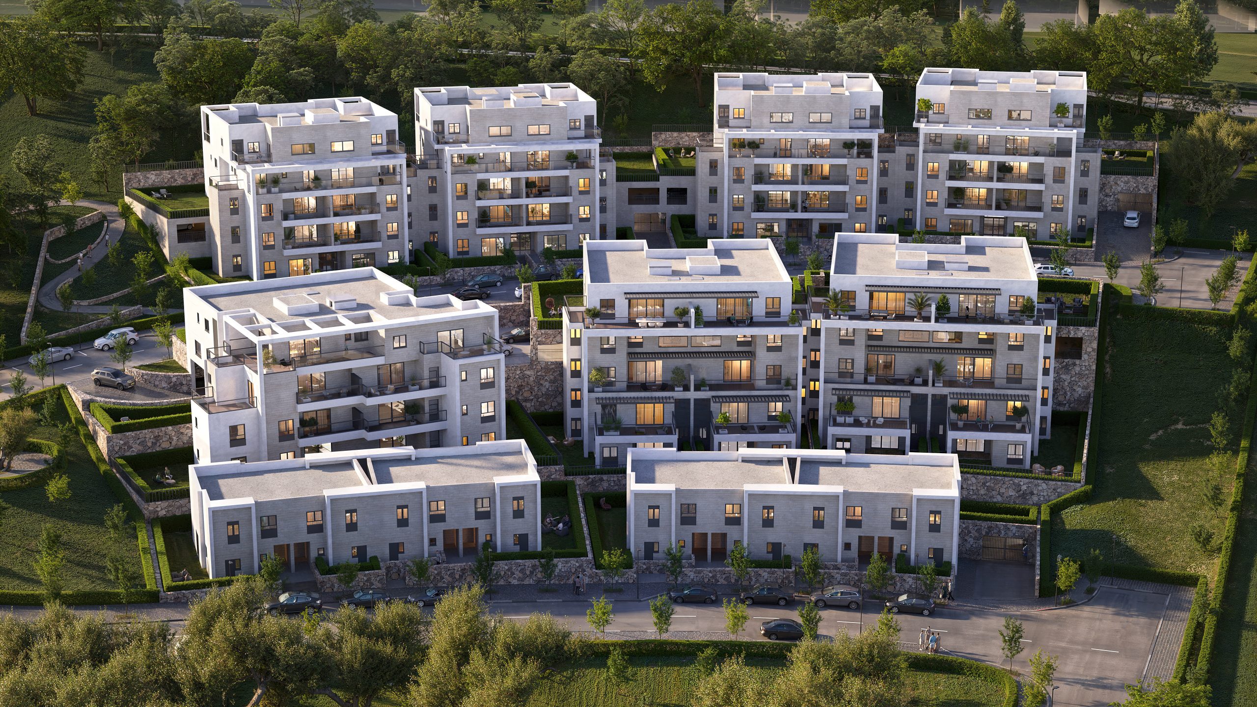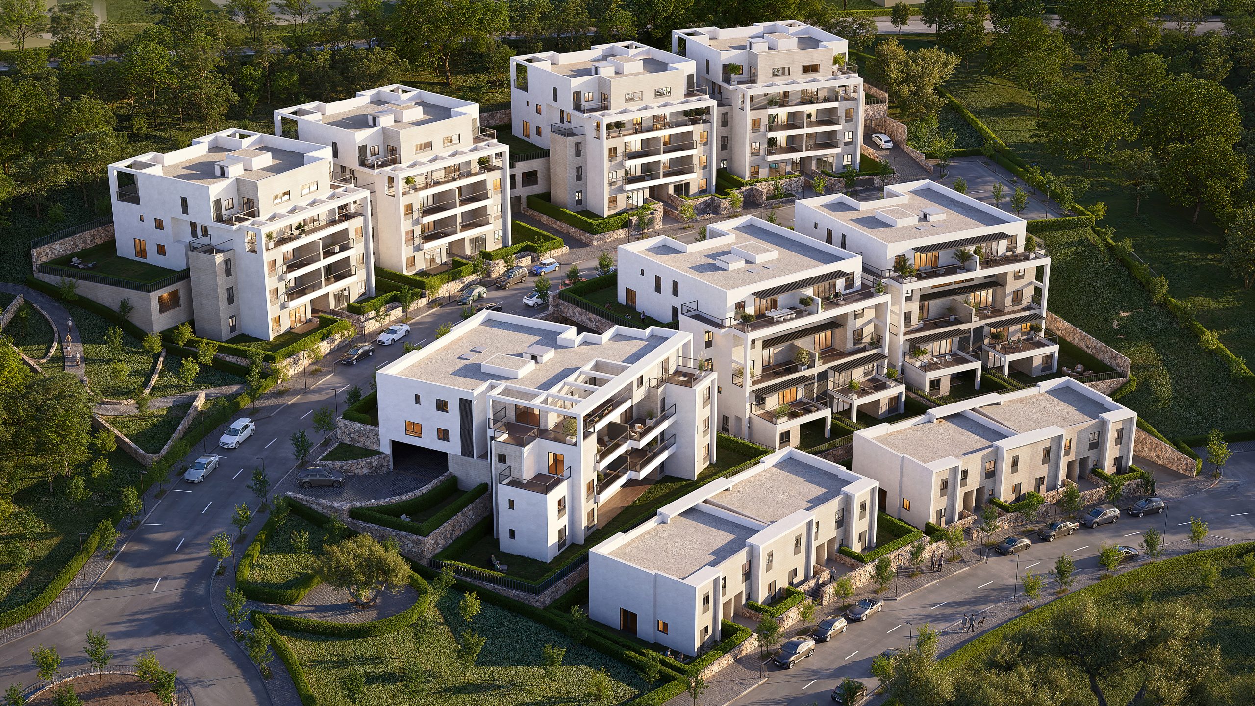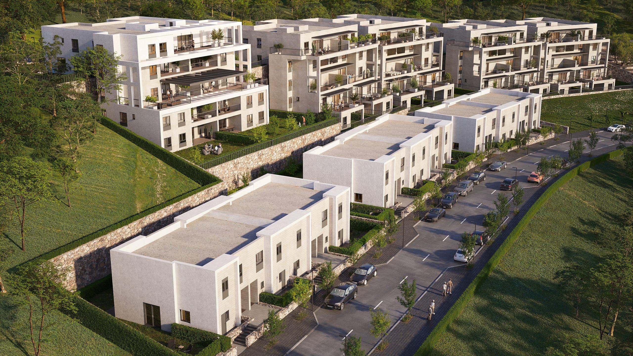 GD Tzur Hadassah was designed by Eyal Itzkin Architects and comprises 17 buildings, including several semi-detached homes.