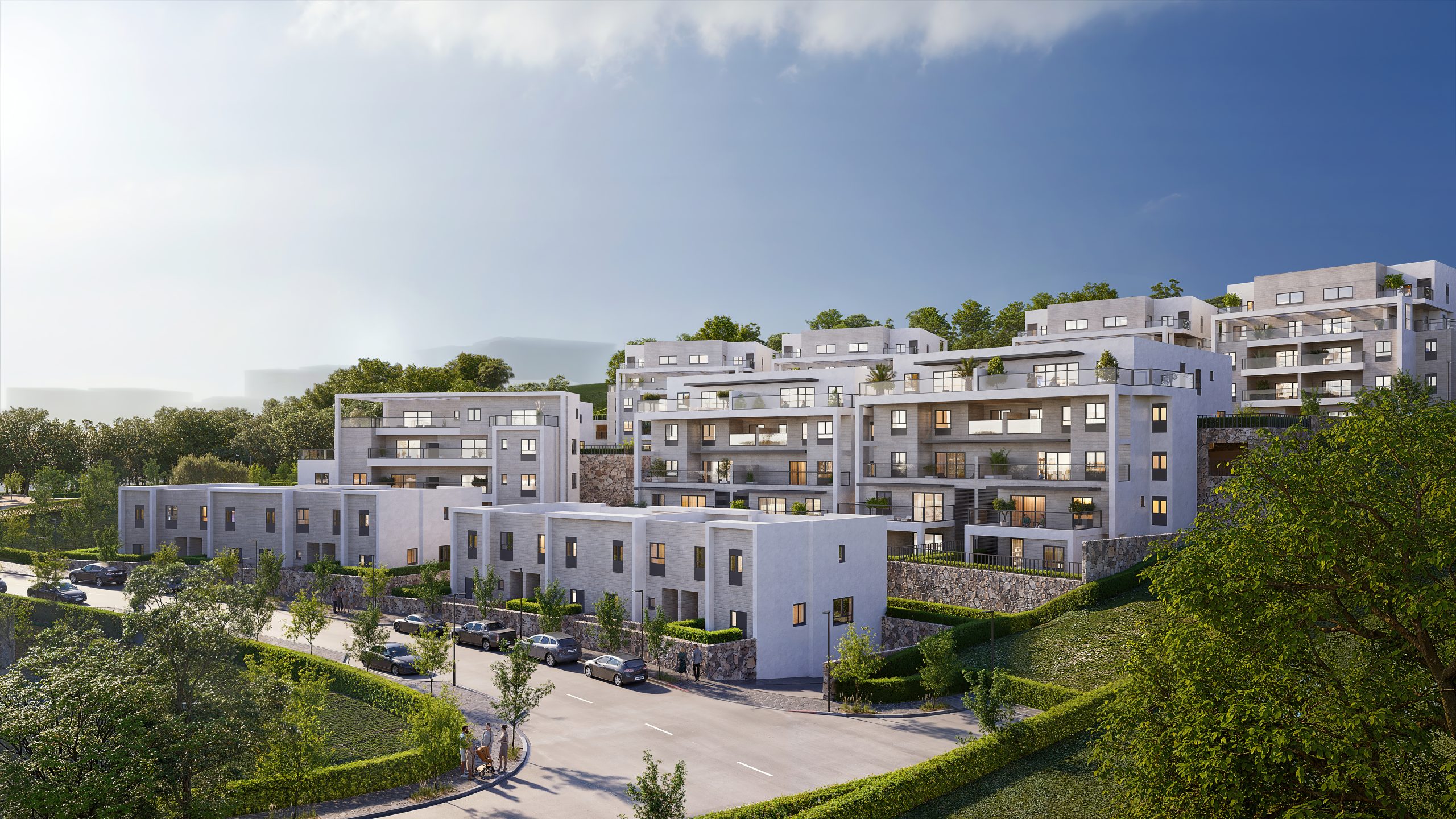 Thanks to architectural planning adapted to the sloping terrain, most apartments enjoy breathtaking views of the green expanses. The buildings were designed with a focus on combining comfort, innovative design, and seamless integration with the natural surroundings. The project offers a diverse mix of apartments with a rich specification, executed with some of the highest standards of finish and meticulous attention to detail in the industry.